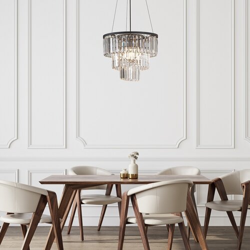 Klasická elegantní svítidla vyrobená z kovu v černé barvě a skleněných transparentmích rampouchů vypadajících jako křišťál. S klasickým závitem E27. Vhodná do obývacích pokojů, kuchyní, jídelem nebo ložnic. |
