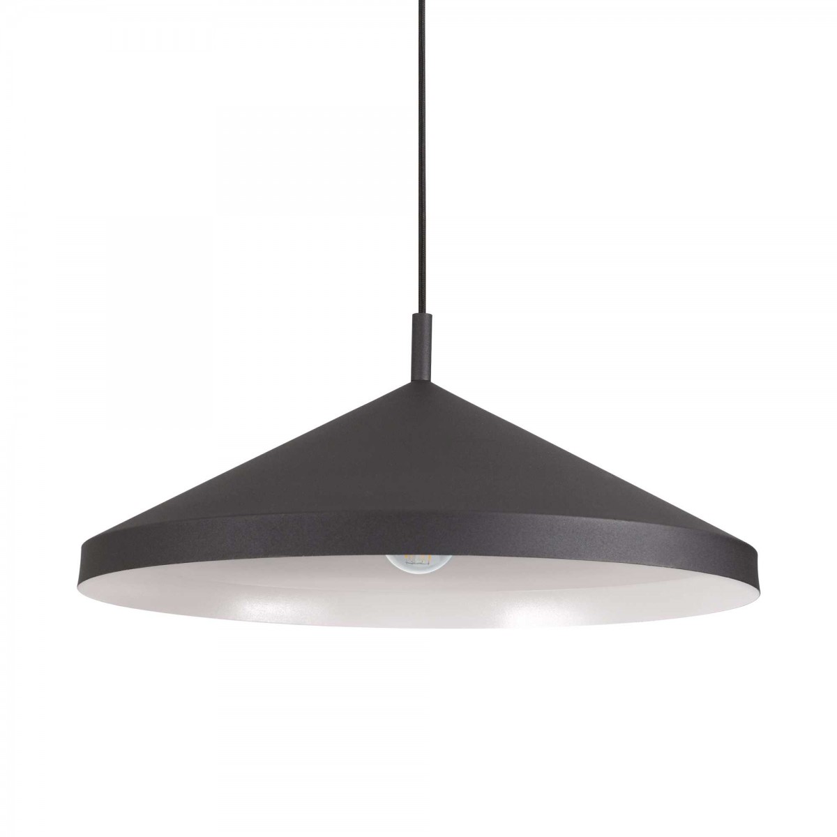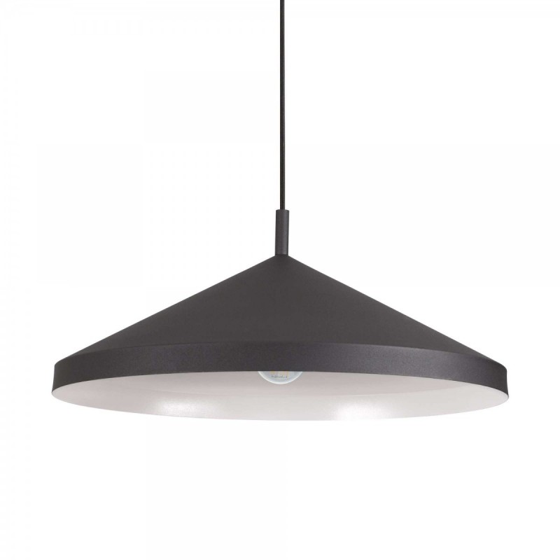 Moderní lustr vyrobený z kovu v černé barvě. S klasickým závitem E27. Vhodný do obývacích pokojů,  kuchyní a jídelen.