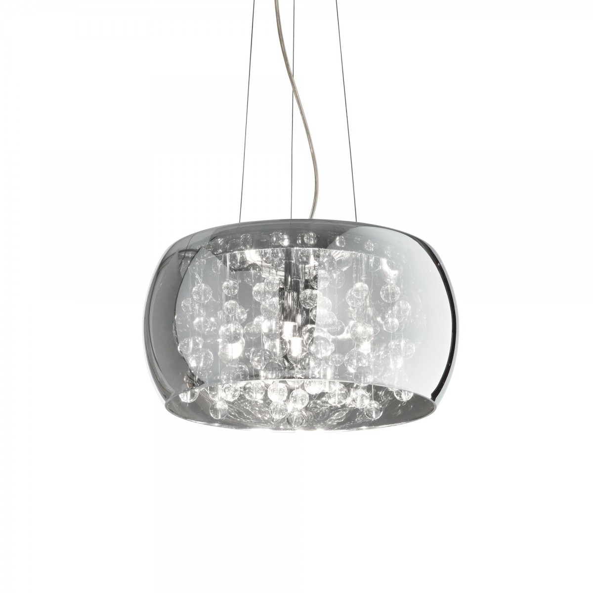 Závěsná svítidla vhodná do všech moderních interiérů. Jsou vyrobena z kovu a skla. Uvnitř stínidla jsou malé závěsy ze skleněných korálků, ktéré působí křišťálovým dojmem. |