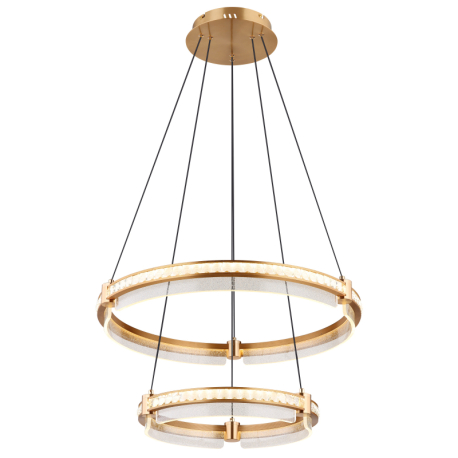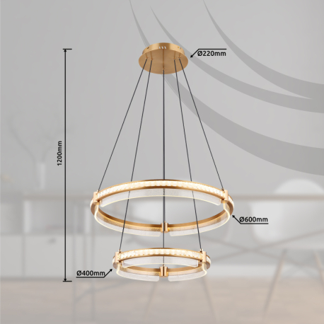 GL-67196-78H Závěsné svítidlo, kov zlaté barvy, hliník zlaté barvy broušený, křišťály K5 čiré, akryl čirý, stmívatelné, několik úrovní pomocí nástěnného vypínače, paměť, dál.ovládání, ø:600mm, H:1200mm, krouh ø:40 a 60cm, LED 78W 230V 430-4143lm 2700-6000K - Blondie LED