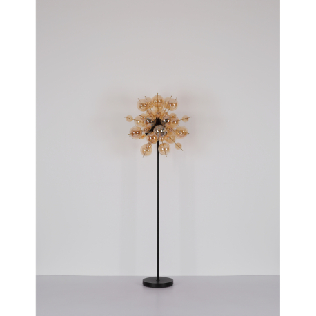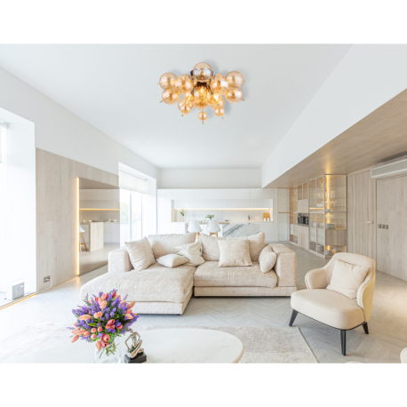 GL-15633DA Stropní svítidlo, kov černý, kov zlaté barvy, skleněné koule jantarové, ø:550mm, V:280mm, skleněné koule ø:15x6cm, 15x10cm, bez žárovek 3xE14, Max. 25W 230V - Udo