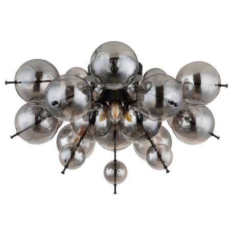 GL-15633DS Stropní svítidlo, kov černý, skleněné koule kouřové barvy, Ø:550mm, V:280mm, skleněné koule ø:15x6cm, 15x10cm, bez žárovek 3xE14, Max. 25W 230V - Udo