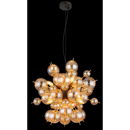 GL-15633HA Závěsné svítidlo, kov černý, kov zlaté barvy, skleněné koule jantarové barvy, kabel PVC černý, možnost zkrácení výšky, ø:550mm, V:1200mm, skleněné koule ø:24x6cm, 24x10cm, bez žárovek 6xE14 , Max. 25W 230V - Udo