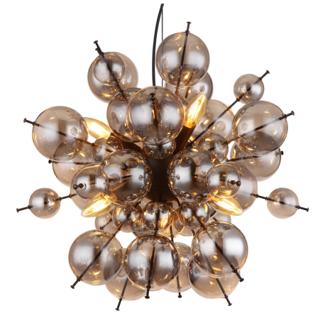 GL-15633HS Závěsné svítidlo, kov černý, skleněné koule kouřové barvy, kabel PVC černý, nastavitelná výška, ø:550mm, V:1200mm, skleněné koule ø:24x6cm, 24x10cm, bez žárovek 6xE14, 25W 230V - Udo