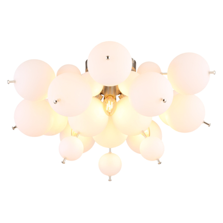 GL-15633DO Stropní svítidlo, kov nikl matný, skleněné koule bílé, kabel PVC černý, ø:550mm, V:280mm, skleněné koule ø:15x6cm, 1x 10cm, bez žárovek 3xE14, Max. 25W 230V - Udo+Grappy