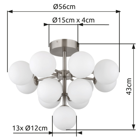 GL-56143-13ND Stropní svítidlo, kov nikl, sklo bílé, výškově nastavitelné, ø:560mm, V:43 mm, bez žárovek 13xG9 LED, max. 5W 230V - Udo+Grappy