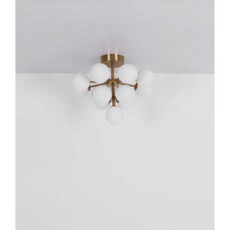 GL-56143-13G Závěsné svítidlo, kov zlaté barvy, skleněné koule bílé, černý textilní kabel, ø:560mm, V:1200mm, bez žárovek 13xG9 LED, max. 5W 230V - Grappy BM+GM