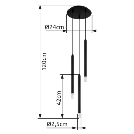 GL-15629-3 Závěsné svítidlo, kov černý, akryl satinovaný, čirý, kabel PVC černý, ø:240mm, V:1200mm, bez žárovek 3xG9 LED, Max. 4W 230V - Blake globo
