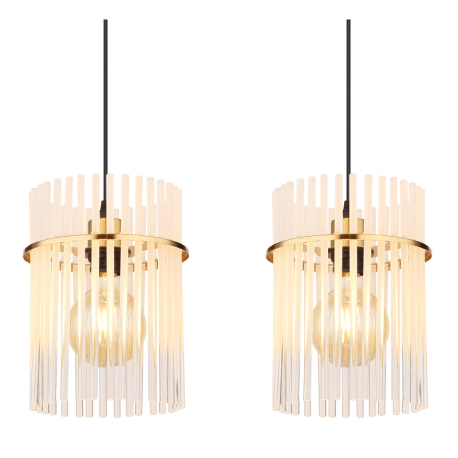 Moderní svítidla vhodná do všech interiérů. Základna svítidla je vyrobena z kovu ve zlaté  barvě a stínidlo je ze skleněných tyčinek v bílé barvě. Osazením těchto svítidel do vašeho interiérů získáte zajímavý designový kousek.