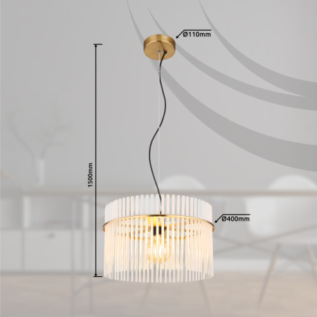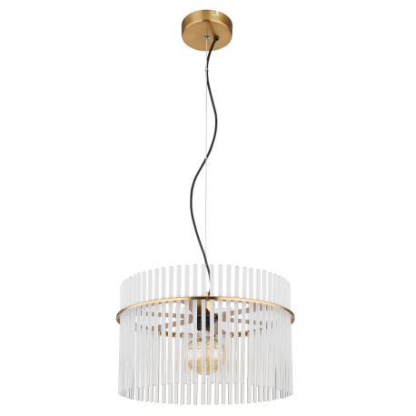 GL-15698HM Závěsné svítidlo, kov zlaté barvy, skleněné tyče bílé, průhledné, kabel PVC černý, možnost zkrácení výšky, ø:400mm, V:1500mm, bez žárovky 1xE27,max. 60W 230V - Gorley gold