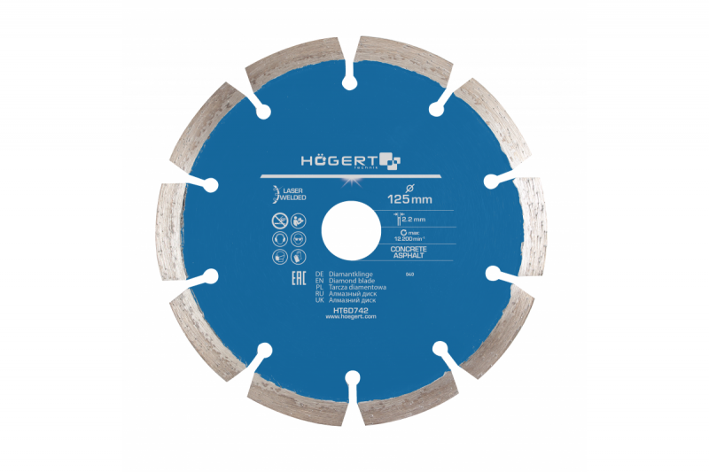 Laserem svařované diamantové kotouče pro úhlové brusky a řezací stroje. Určeno pro suchý provoz. Pro řezání stavebních materiálů jako je asfalt, cihly, kabřinec, železobeton, dlažební kostky, keramické dlaždice atd.