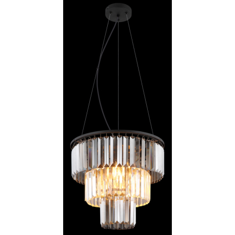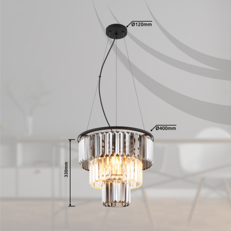 GL-15695H Závěsné svítidlo, kov černý, skleněné křišťály kouřové, čiré, kabel PVC černý, možnost zkrácení výšky, ø:400mm, V:1200mm, bez žárovek 3xE27,max. 40W 230V - Naxis