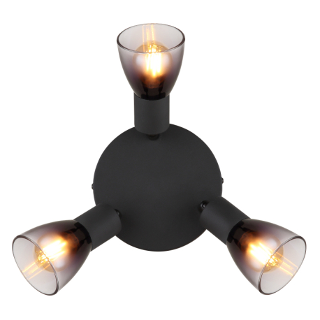 GL-54312-3  Stropní svítidlo, kov černý, sklo kouřové, průhledné, ø:220mm, V:165mm, bez žárovek 3xE14, max. 25W 230V - Satella