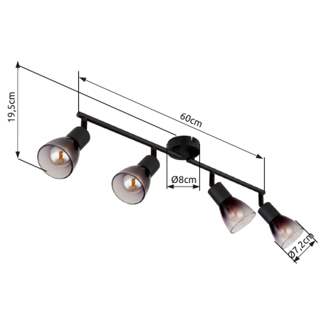 GL-54312-4  Stropní svítidlo, kov černý matný, sklo kouřové a průhledné, otočné/naklápěcí, Dx?xV:600x80x195mm, bez žárovek 4xE14,max. 25W 230V - Satella