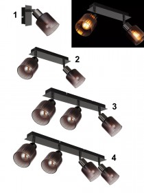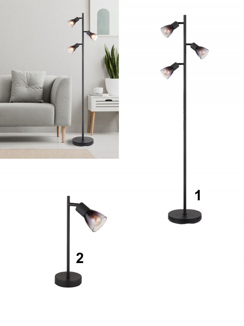GL-54312-3S Stojací svítidlo, kov černý matný, sklo kouřové a průhledné, kabel PVC černý, vyínač na kabelu, Dx?xV:300x220x1610mm, délka kabelu 1800mm, bez žárovek 3xE14, max. 25W 230V - Satella smoke glass