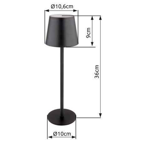 GL-58438G Stolní svítidlo, kov černý, plast černý a bílý, dotykové zapnutí/vypnutí, plynulá regulace dotykového stmívače, paměť, aku CR18650 1800mAh 3,7V, IP44, ø:106mm H:360mm, V:36cm nebo 24cm, LED 3W 230V, zdroj 300lm, výstup 130lm, 3000K - Vannie LED