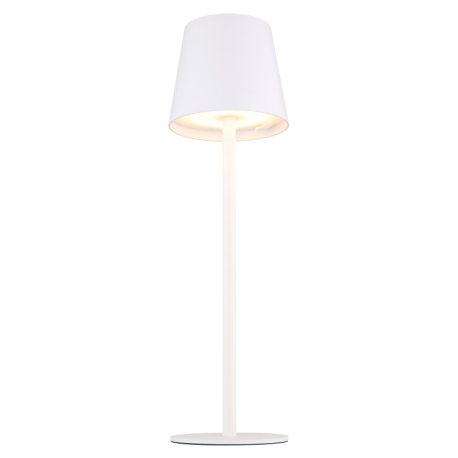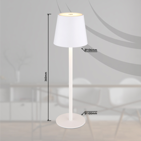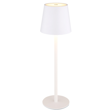 GL-58438W Stolní svítidlo, kov a plast bílý, kabel PVC bílý, dotykové zapnutí/vypnutí, plynulý dotykový stmívač, paměť, aku CR18650 1800mAh 3,7V, IP44, ø:106mm, H:360mm, V:36cm nebo 24cm, včetně LED 3W 230V, zdroj 300lm, výstup 130lm, 3000K - Vannie LED