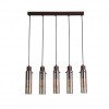 Searchlight závěsné svítidlo barva kávová a amber, povrchová úprava barvení, použitý materiál je kov a sklo. Rozměry v cm: celková výška: 120, výška: 31, šířka: 7, délka: 68, projekce: 0. Světelný zdroj objímka E27, potřeba žárovek 5, světelný zdroj není v balení, doporučený typ žárovky od výrobce je klasická baňka na max. 60W.