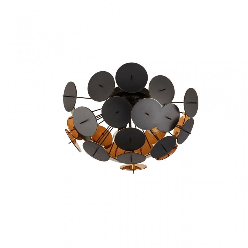 Searchlight stropní svítidlo barva černá a zlatá, povrchová úprava barvení a pokovení, použitý materiál je měkká ocel a plast. Rozměry v cm: celková výška: 27, výška: 27, šířka: 52, délka: 0, projekce: 0. Světelný zdroj objímka E14, potřeba žárovek 3, světelný zdroj není v balení, doporučený typ žárovky od výrobce je svíčka na max. 60W. |