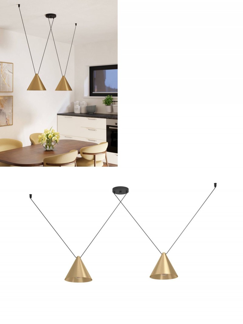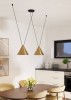 Moderní závěsné svítidlo z rodiny Narices. Zajímavý prvek do vašeho obývacího pokoje, jídelny nebo předsíně. Svítidlo je vyrobeno z oceli v barvě černé, zlaté a broušené oceli. |