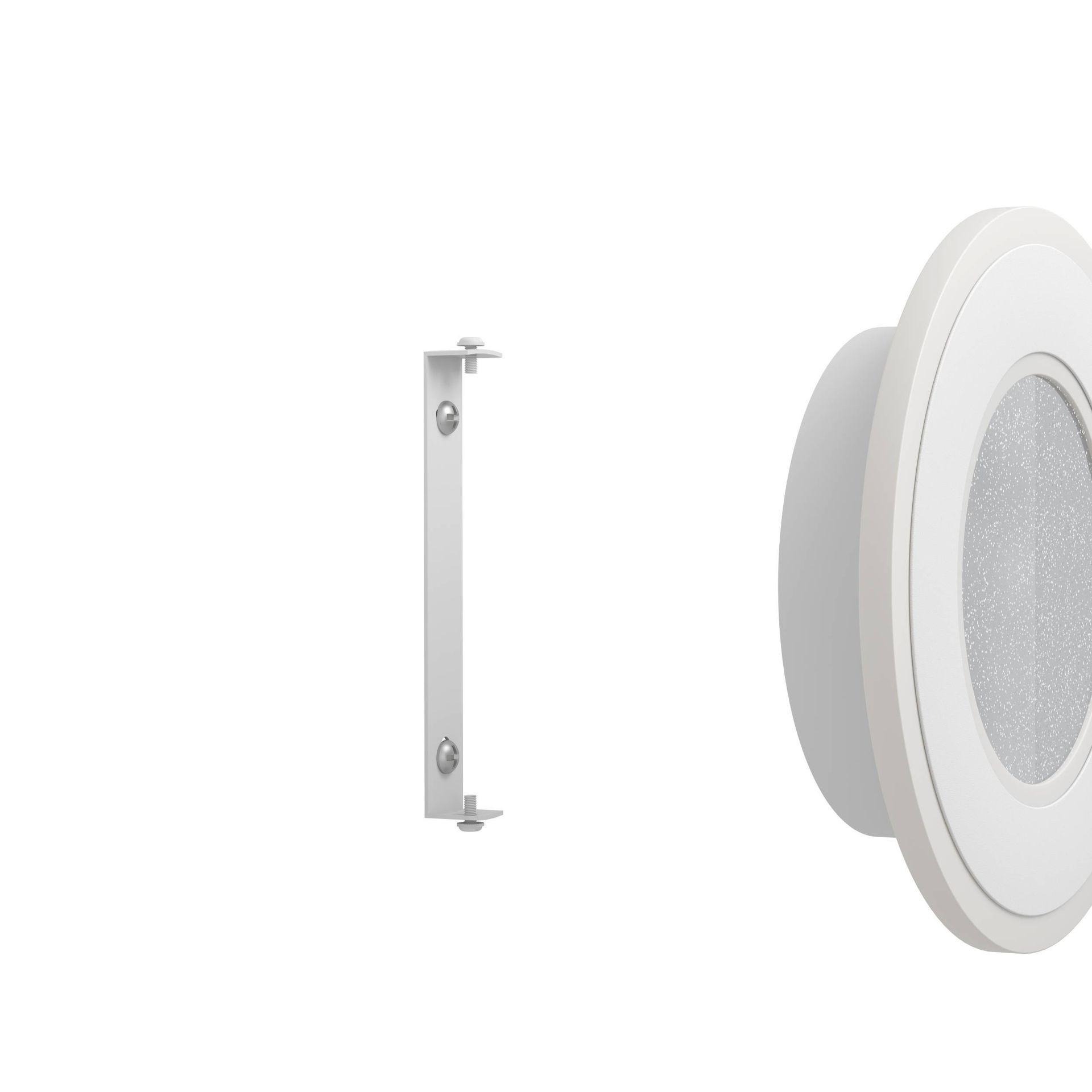 Elegantní svítidla na stěnu vyrobená z oceli a plastu v bílé barvě s plastovými částicemi, které vytváří efekt křišťálků. Svítí neutrální bílou barvou, není možné je stmívat.