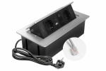 GTV-AE-PBSUR2GS-53 - MULTISOFT nábytková zásuvka 2x zásuvka Schuko, USB A+C, RJ45, napájecí kabel se zástrčkou, hliník