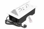 GTV-AE-PBSUR2GU-10 - MULTISOFT nábytková zásuvka 2x zásuvka s uzemněním, USB A+C, RJ45, napájecí kabel se zástrčkou, bílá