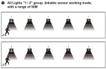 MÓD 1 – skupinové spínání svítidel se shodně nastaveným módem (1). Světlo které detekuje pohyb se rozsvítí a současně se rozsvítí všechna svítidla u kterých jsme nastavili mod 1 (vyšle bezdrátově impuls těmto svítidlům)