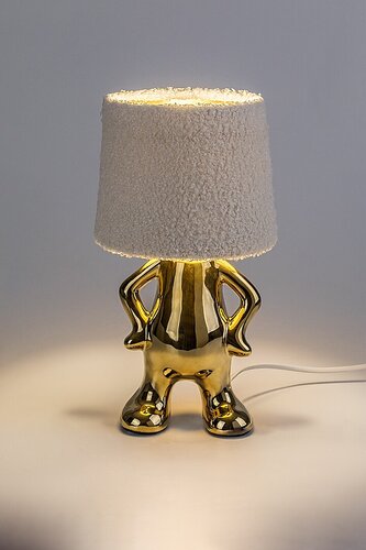 Stylové lampičky vyrobené z keramiky a textilu. Keramická základna je ve stylu postavičky, klobouk stínidla je v imitaci kůže z ovce. Skvěle se hodí do moderních interiérů i dětských či studentských pokojů. |