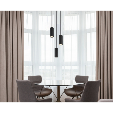 | Stylová závěsná svítidla vyrobená z kovu a hliníku v matné černé barvě. Tělo svítidla je kovové a stínidlo je hliníkové. Se závitem GU10. Tato moderní svítidla lze doplnit o chytrou LED žárovku a pomocí chytrého telefonu měnit barvu nebo teplotu svícení, stmívat je a navodit tak příjemnou atmosféru v interiéru. | |
