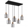 Moderní svítidla vyrobená z kovu v matné černé barvě a se skleněnými stínidly v kouřové barvě doplněných o dřevěný, hnědý prvek. Skvěle se hodí do obývacích pokojů, kuchyní, jídelen i ložnic. Svítidla se dodávají bez žárovek. Se závitem E27.