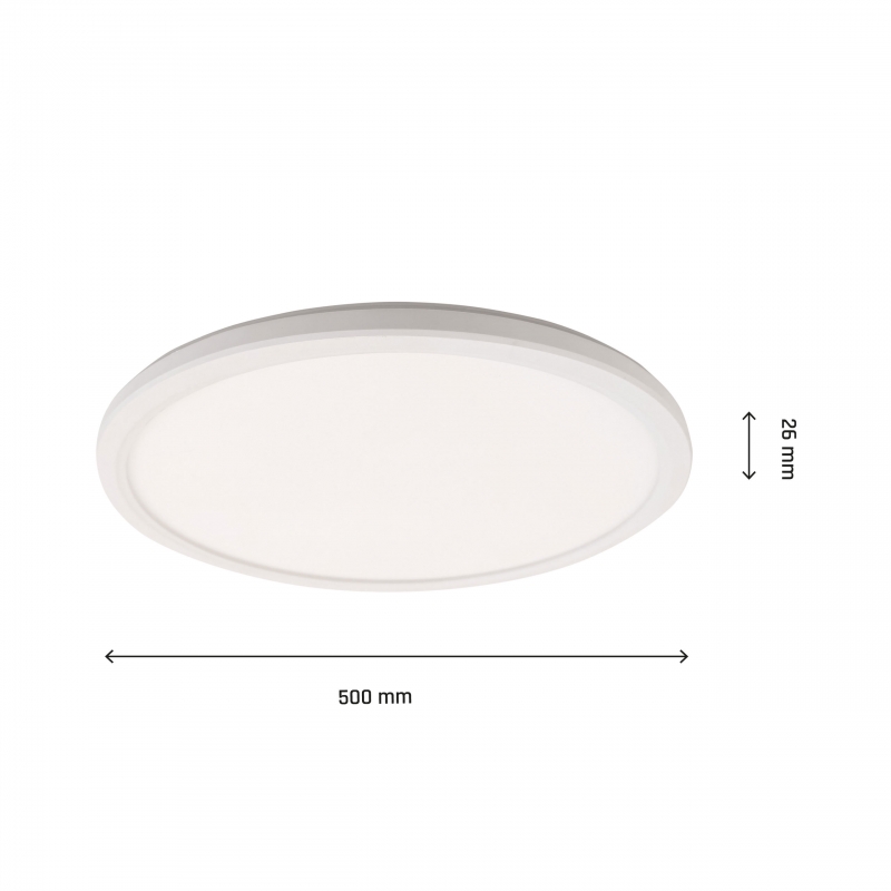 Moderní kulaté svítidlo vyrobené z plastu v bílé barvě. Díky přepínači lze nastavit teplotu svícení na 3000K/4000K nebo 6000K. Má ochranu IP54, takže je vhodné také pro venkovní použití. Svítidlo pod číslem 2 a 3 lze dokoupením závěsu vytvořit elegantní závěsné svítidlo.