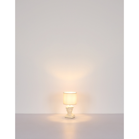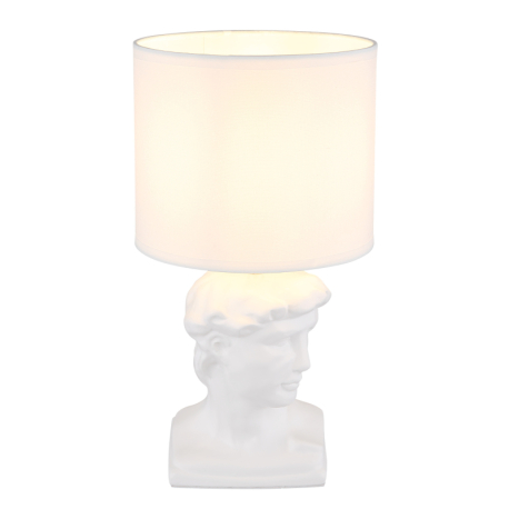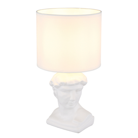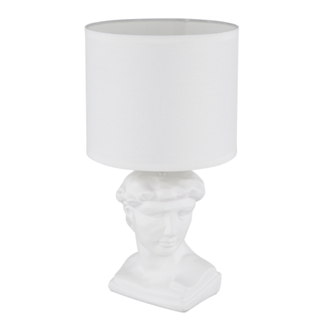 Jednoduché, elegantní stolní lampičky vhodné do obývacích pokojů, ložnic, předsíní a pod. Základna má tvar bysty Césara a je vyrobena z keramiky, stínidlo je kulaté, textilní. Se závitem E14. Lampičky se dodávají bez žárovek. Délka kabelu 130 cm. |