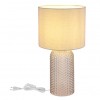 Stylová stolní lampička vyrobená ze skla a textilního stínidla. Skleněná noha svítidla je dekorovaná, což ji dodává zajímavý vzhled. Skvěle se hodí do obývacích pokojů, ložnic i předsíní k dotvoření příjemné atmosféry. Se závitem E27. Žárovky nejsou součástí balení. Délka kabelu 130 cm. |