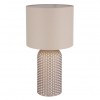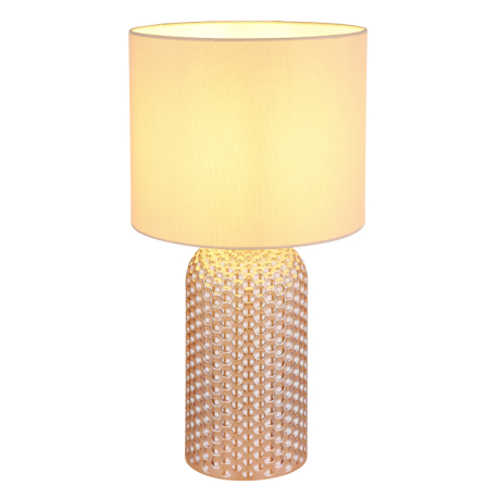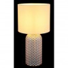Stylová stolní lampička vyrobená ze skla a textilního stínidla. Skleněná noha svítidla je dekorovaná, což ji dodává zajímavý vzhled. Skvěle se hodí do obývacích pokojů, ložnic i předsíní k dotvoření příjemné atmosféry. Se závitem E27. Žárovky nejsou součástí balení. Délka kabelu 130 cm. |
