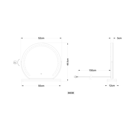 Zrcadlo s osvětlením. Díky přepínači lze nastavit teplotu barvy svícení na 2700K/4000K nebo 6500K. Svítidlo má také dotykový stmívač, kterým lze ztlumit jas svícení, funkce paměti posledního nastavení.