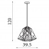 Výška svítidla je 1500 mm, šířka 390 mm, délka závěsu je nastavitelná .