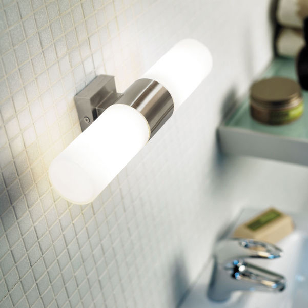 | Dvojité nástěnné svítidlo Nordlux Tangens s jednoduchým stínidlem ve tvaru válce z opálového skla na čtvercové základně ve dvou barevných variantách | |