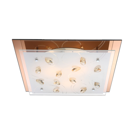 GL-40412-3 Stropní svítidlo, jantar, sklo bílé, K5 křišťály champagne, spodní sklo jantar, Dx?xV: 42x42x9cm, bez žárovek 3xE27, max. ILLU 40W 230V. - Ayana