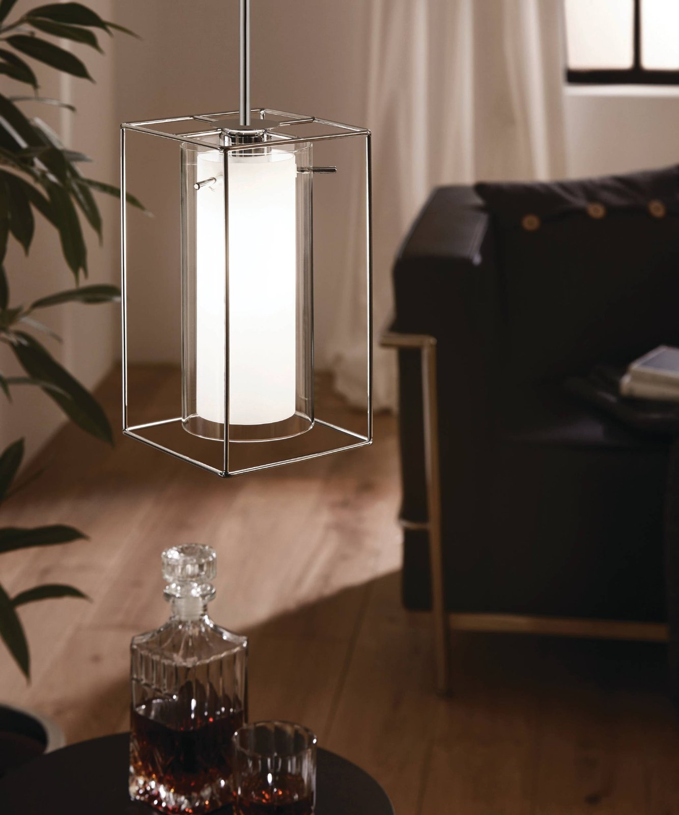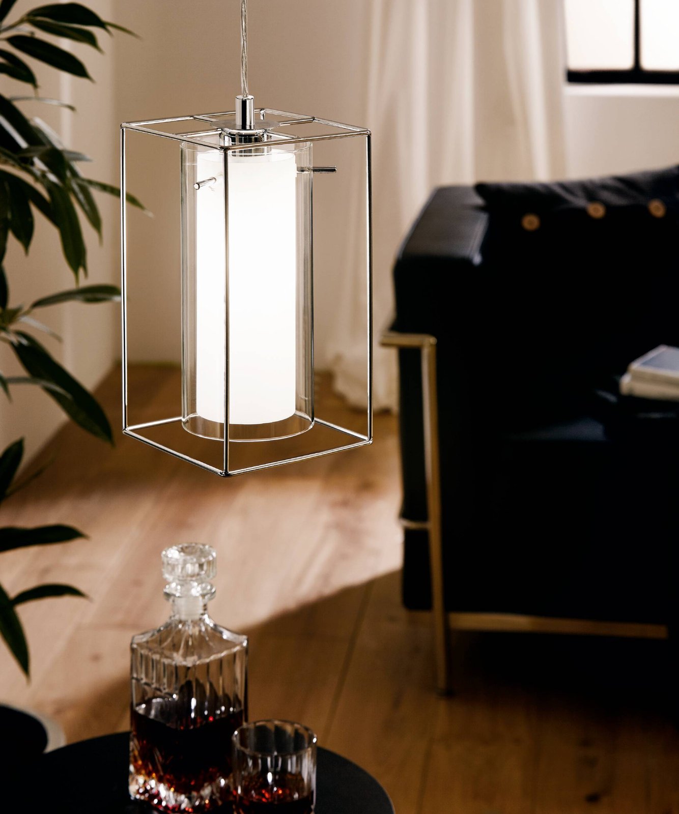 Zajímavá a stylová závěsná svítidla vyrobená z oceli v chromové barvě a z čirého a bílého skla.Tyto lustry je možné osadit také designovou filamentovou žárovkou, čímž podtrhnete celkový vzhled svítidla. |