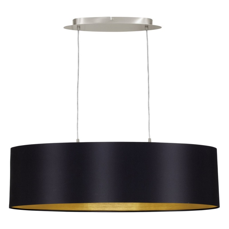 Maserlo jsou svítidla v moderním designu. Jsou vyrobena z oceli v barvě matný nikl a stínidlo je textilní, z vnitřní strany ve zlaté barvě a z venkovní strany v černé barvě. |