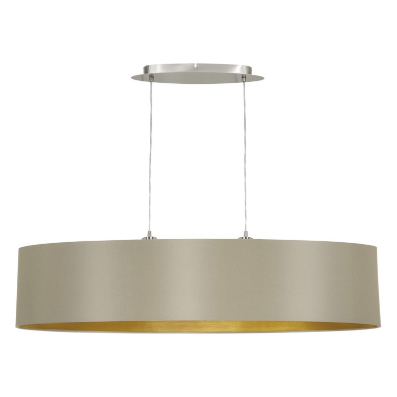 Moderní svítidla vyrobená z oceli v barvě matný nikl a stínidla jsou textilní v barvě taupe a zlatá. Jsou vhodná do všech obytných místností ve vašem interiéru. Je možné je osadit chytrou LED žárovkou a pomocí aplikace v chytrém telefonu je stmívat nebo měnit teplotu a barvu svícení. |