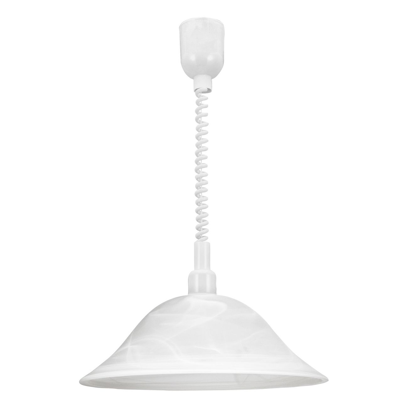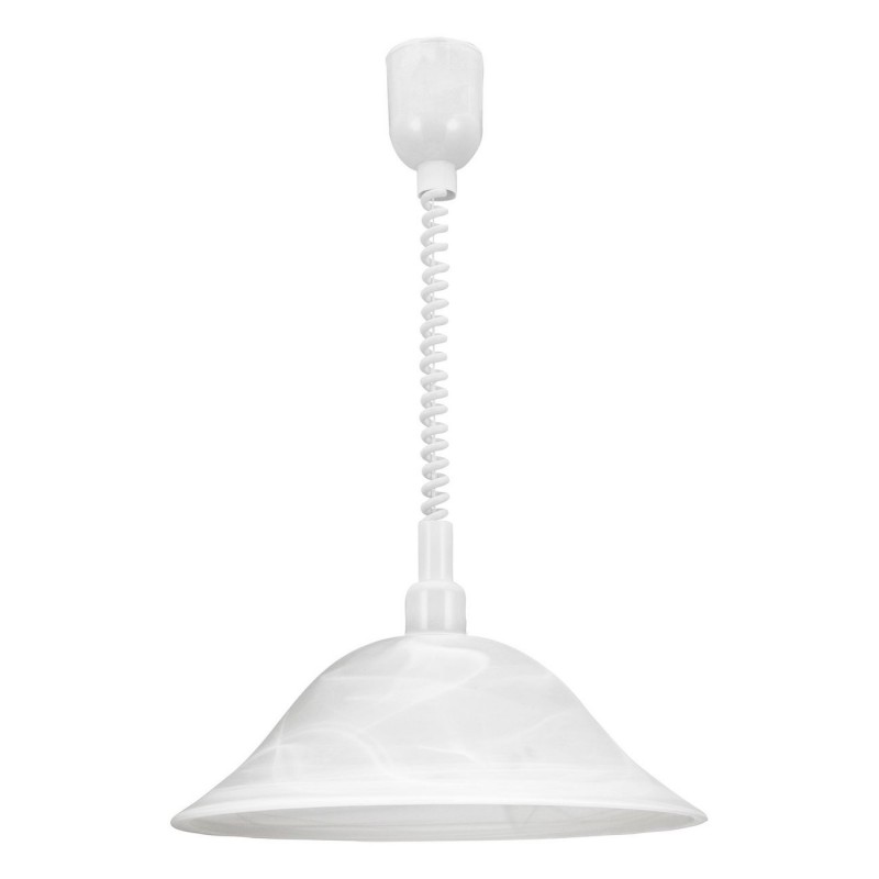 Jedná se o typická kuchyňská svítidla v klasickém stylu. Základna je plastová a stínidlo je z alabastrového skla. Díky spirálovému kabelu mají flexibilní, nastavitelnou výšku zavěšení. |