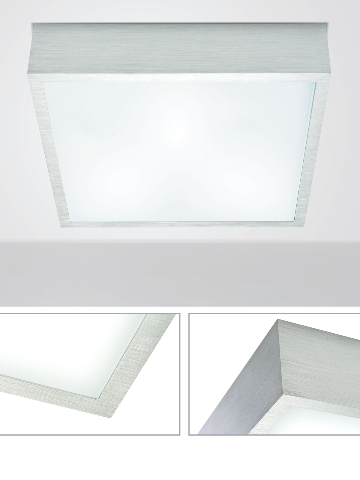Pěkné italské svítidla vhodné na úsporné LED žárovky Materiál: škrábaný hliník, clona sklo. Žárovku doporučuji s mléčnou baňkou, aby nebyly stíny na skle od led podlouhlých čipů. |