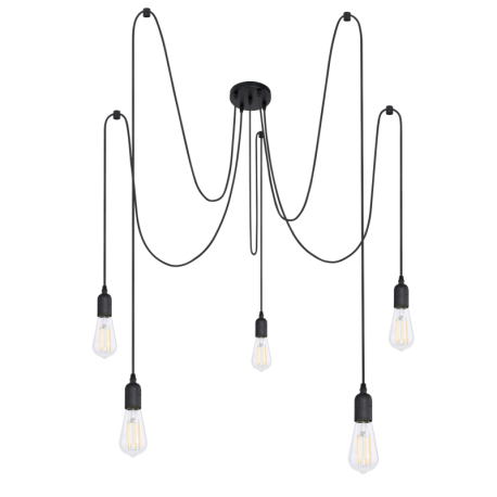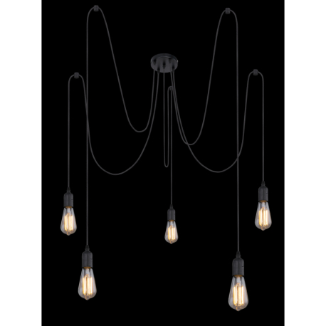 GL-A110-5 Závěsné svítidlo, černý kov, textílie, plast, kabel 2x2m + 3x1,5m, Ø15cm, bez žárovek 5xE27, max. 60W 230V. - Maracana