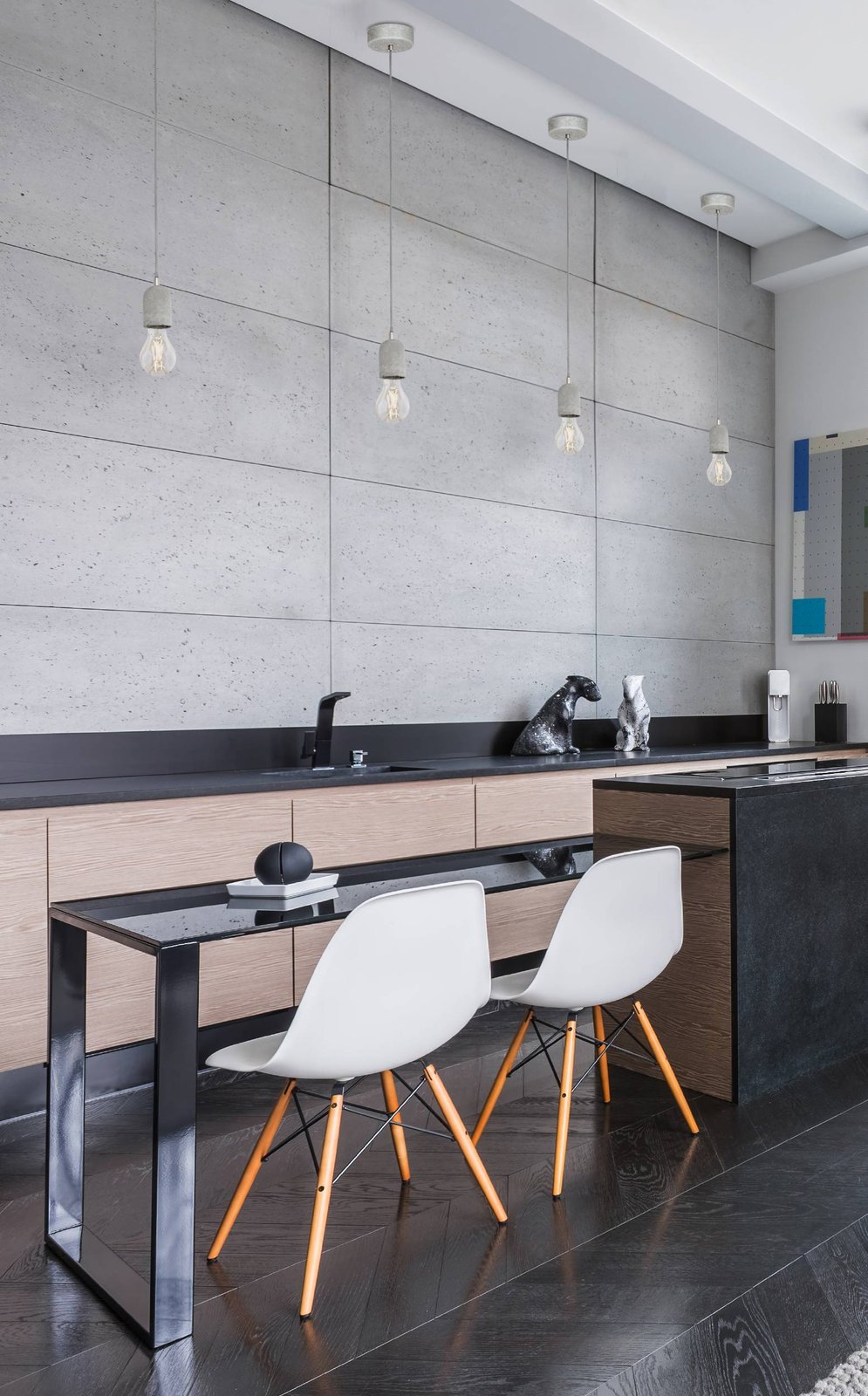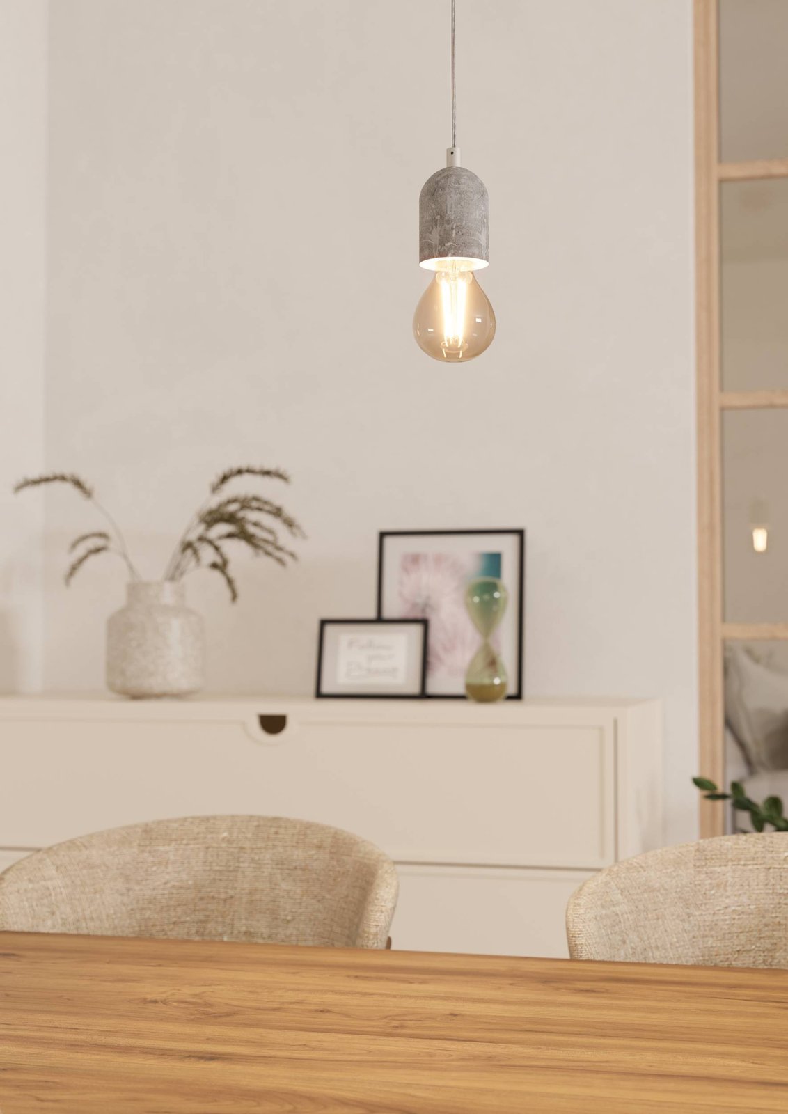 Závěsná svítidla vyrobená z oceli a betonu v šedé barvě. Hodí se do vintage interiérů. |
