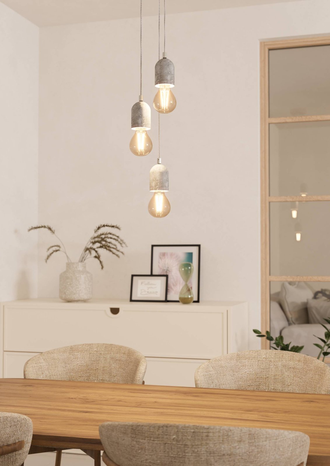 Závěsná svítidla vyrobená z oceli a betonu v šedé barvě. Hodí se do vintage interiérů. |