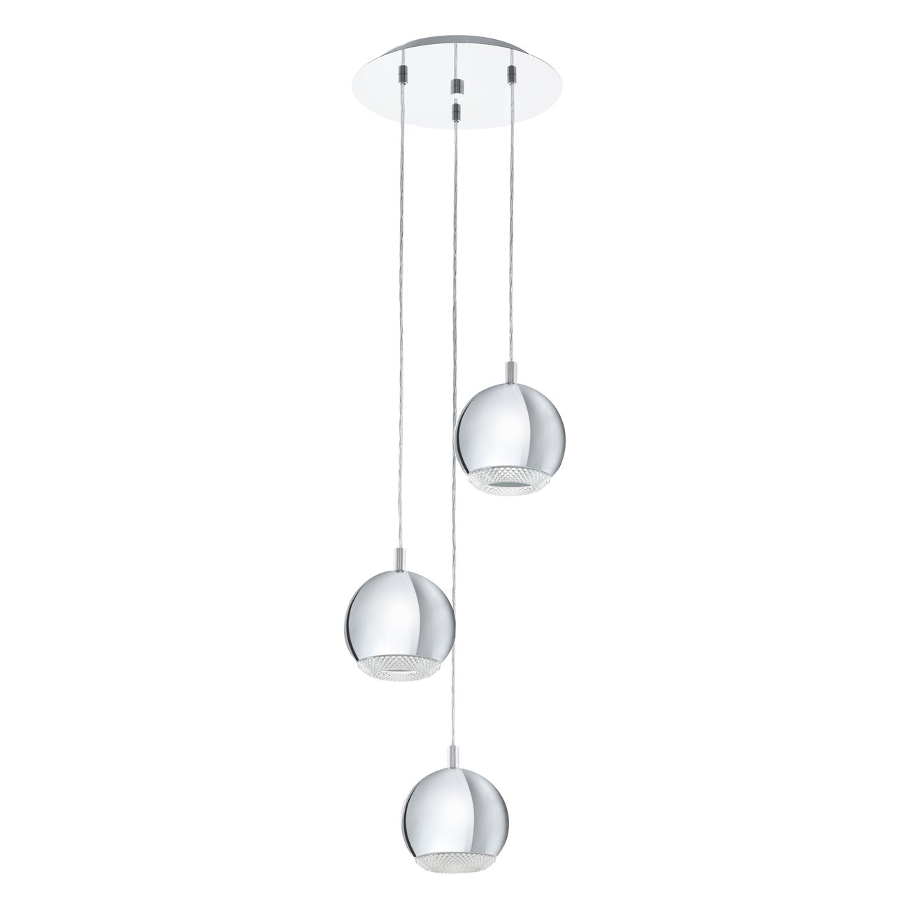Stylová svítidla vhodná do obývacích pokojů, ale i kuchyní a jídelen nad jídelní stůl nebo kuchyňský ostrůvek. Jsou vyrobena z oceli v barvě chrom a z plastu v čiré barvě. Jsou dodávána včetně žárovek se závitem GU10. |
