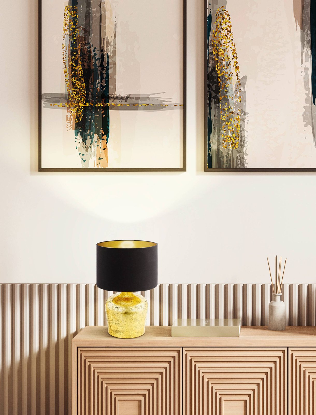 Kombinace černé a zlaté barvy, ze které je tato lampička vyrobená působí velmi elegantně. Je vhodná do obývacích pokojů na komodu nebo do ložnice na noční stolky k dotvoření příjemné atmosféry v interiéru. |