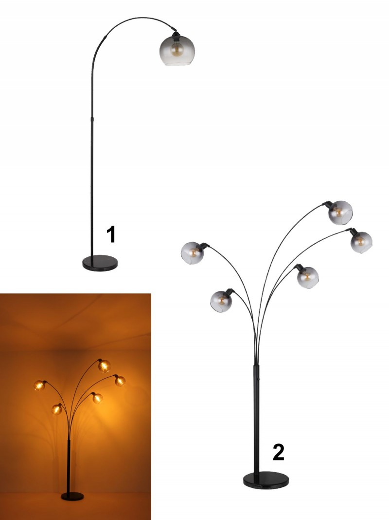 2. GL-58228NBS Stojací svítidlo kov černý matný, mramor černý, sklo kouřové, kabel PVC černý, vypínač, Dx?xV:980x1100x2080mm, délka kabelu 1800mm, bez žárovek 5xE27 40W 230V detail výrobku